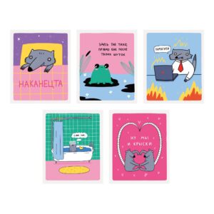 41.01 ₽ Тетрадь формата А5 48 листов от Эксмо представляет собой отличное решение для записей, заметок.Эта тетрадь имеет клетчатую линовку, которая обеспечивает удобство и порядок при письме.На обложке изображены иллюстрации со смешными животными в наших злободневных темах.Крепление - скрепка,обложка мелованный картон с твин-лаком на элементах дизайна.