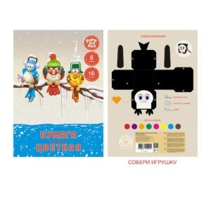 22.04 ₽ Набор односторонней цветной бумаги из 16 листов Эксмо отличается качественным наполнением: 16 листов офсетной бумаги в классической цветовой гамме, которые отлично сгибаются и не оставляют заломов, хорошо прокрашены, имеют яркие и насыщенные цвета, а на упаковке привлекательные иллюстрации. На обороте набора содержится занимательная игра «Собери игрушку» - фигура для вырезания