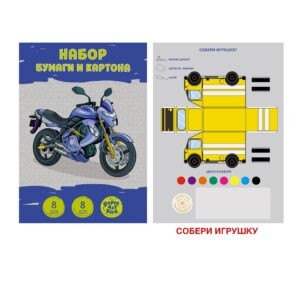 88.07 ₽ Набор цветного картона и бумаги от компании "Канц-Эксмо" отличается повышенным качеством: листы хорошо прокрашены, цвета яркие и насыщенные, листы отлично сгибаются, а упаковка имеет привлекательный дизайн. В наборе 16 листов (8 листов цветной мелованной бумаги и 8 листов цветного картона). На обороте папки содержится занимательная игра «Собери игрушку» (фигура для