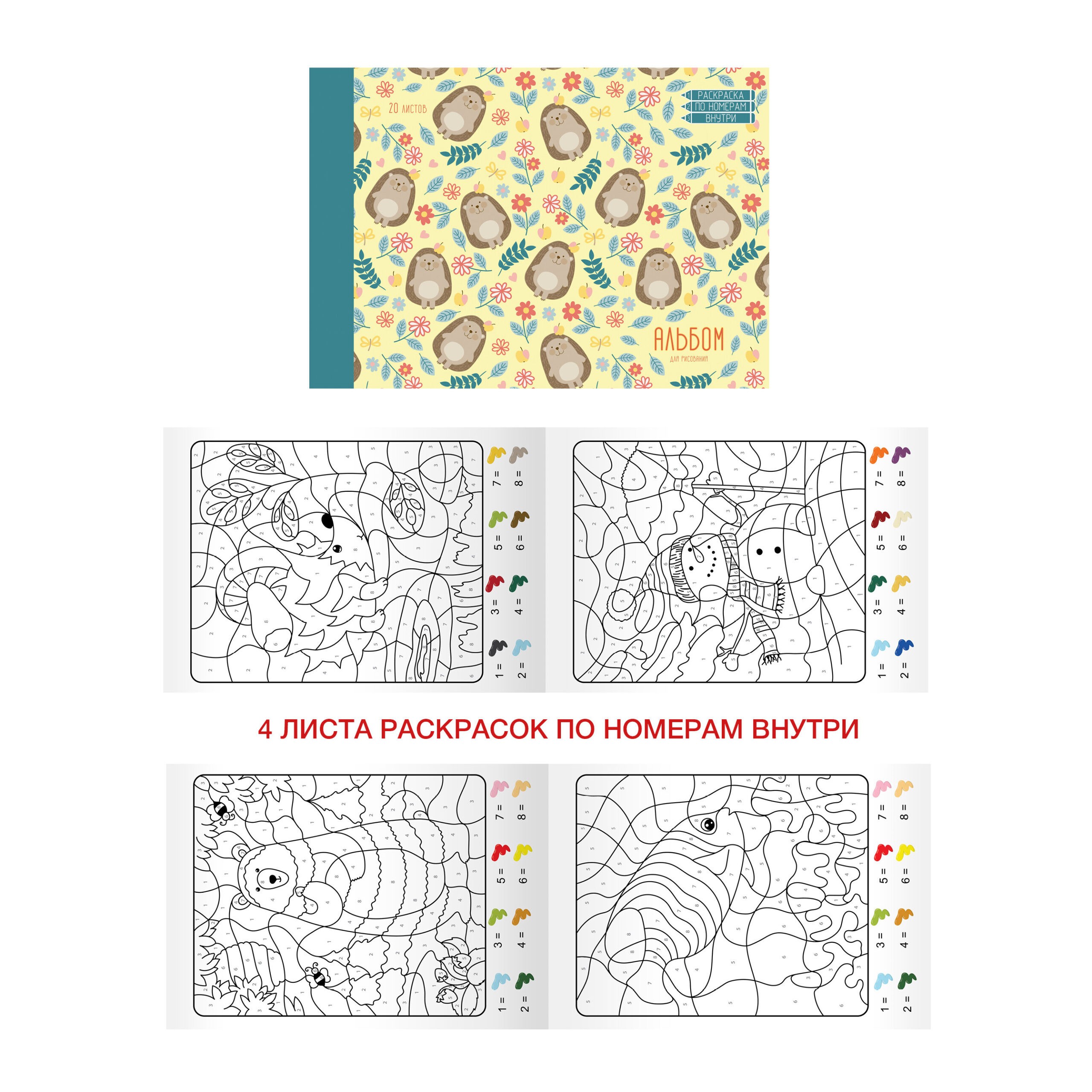 Альбом для рисования “Ежики в цветах” с обучающим контентом от «PAPER ART KIDS» подходит для совместно творчества с детьми в домашних условиях или в отпуске. Отличная идея для подарка 2 в 1: Рисуй и играй! Комбинация классического альбома для рисования с 4-мя листами раскрасок по номерам, способствует развитию не только творческих способностей ребенка, но и развитию мелкой моторики, пространственного мышления. Обложка украшена очаровательными персонажами, которые подарят положительные эмоции и вдохновят юных художников на новые творения. Обладатель премии “Золотой медвежонок 2020”. Крепление на склейке, формат А4, 20 листов.