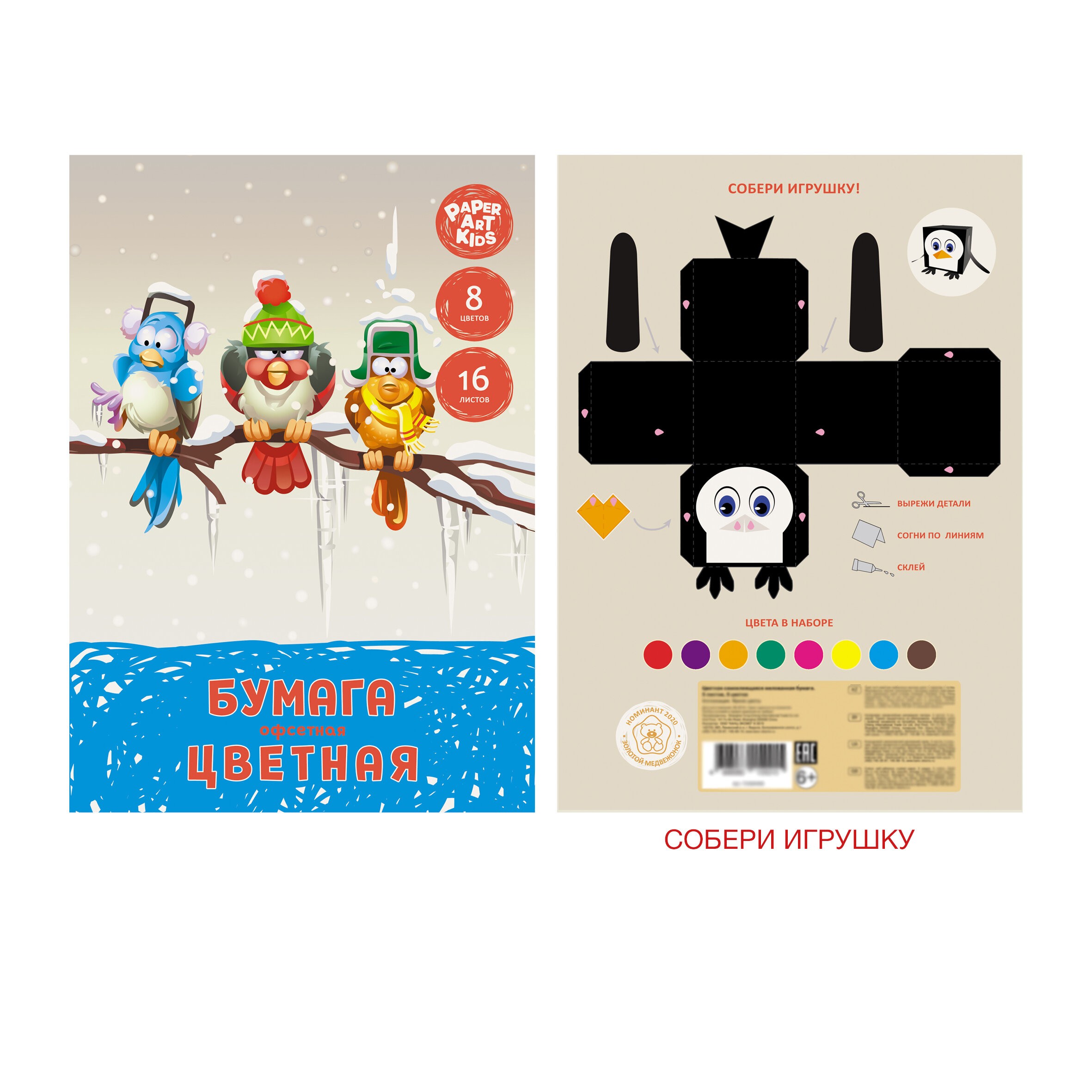 Набор односторонней цветной бумаги из 16 листов Эксмо отличается качественным наполнением: 16 листов офсетной бумаги в классической цветовой гамме, которые отлично сгибаются и не оставляют заломов, хорошо прокрашены, имеют яркие и насыщенные цвета, а на упаковке привлекательные иллюстрации. На обороте набора содержится занимательная игра «Собери игрушку» – фигура для вырезания и склеивания, которая делает набор развивающей продукцией для детей. Работа с бумагой – это самый эффективный и недорогой способ развить у ребенка воображение, сформировать правильное цветовосприятие и мелкую моторику, о важности которой не перестают твердить школьные педагоги и психологи. Количество цветов: 8. Количество листов: 16 листов. Крепление: скрепка. Обложка: двойной крафт картон