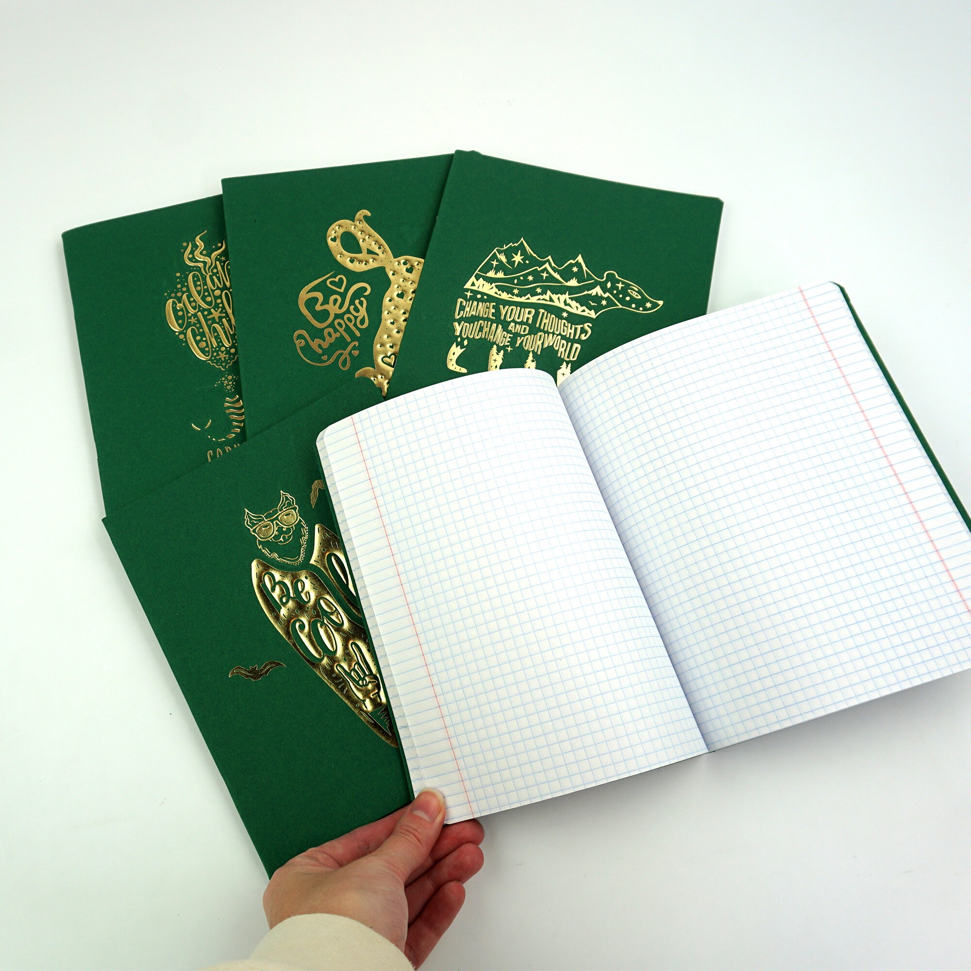 Тетрадь общая “TOTAL GREEN” – премиальный продукт с выразительным фоном и графическим дизайном. Для создания тетради мы используем импортный дизайнерский цветной картон, повышенной плотности (210гр/м), который отличается ровным, глубоким, матовым цветом и фактурной поверхностью. Цвет картона относится к классификации TOTAL GREEN – или ультра зеленый, который дополнен золотой фольгой и объемной иллюстрацией. Необычный подбор материалов и цветовых решений непременно придутся по вкусу старшеклассникам, студентам вызов, современным офисным сотрудникам, которые шагают в ногу со временем и следят за трендами. Классический внутренний блок в клетку делает тетрадь универсальной в использовании. Формат: А5. Листаж: 48 листов. Крепление: скрепка.