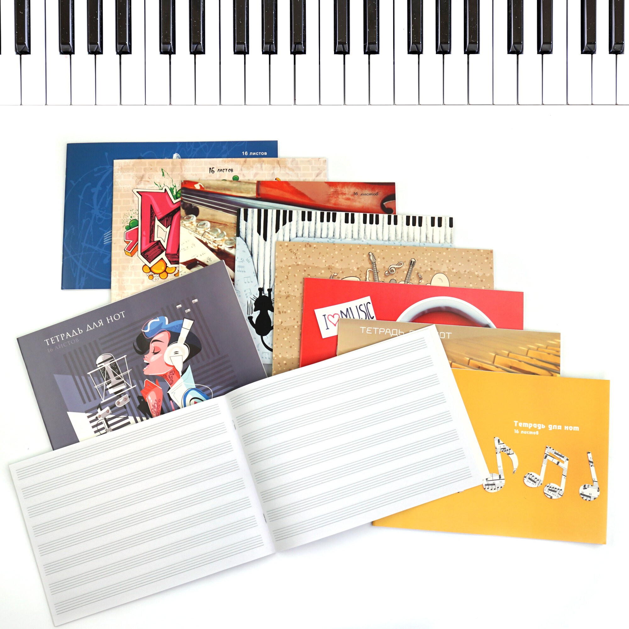 Тетрадь для нот А4 формата “Канц-Эксмо” – отличный инструмент для записи нот различной сложности. Тетрадь отличает качество исполнения: удобный формат А4, плотная обложка из мелованного картона (230гр/м), белый внутренний блок (60гр/м), горизонтальная ориентация (альбомная) с четкой линовкой и широким станом (5 строк). Современный дизайн обложки в спокойной цветовой гамме. Тетрадь рекомендована к использованию как начинающими, так и опытными музыкантами для уроков в музыкальной школе и самостоятельных занятий дома. Количество листов: 16 листов. Крепление: скрепка, по короткой стороне.